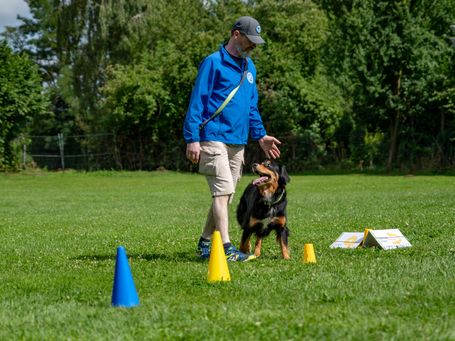Sie und Ihr Hund müssen die Übungen im Parkour präzise ausführen. Daher ist u.a. die mentale Auslastung Ihres Hundes das übergeordnete Ziel.